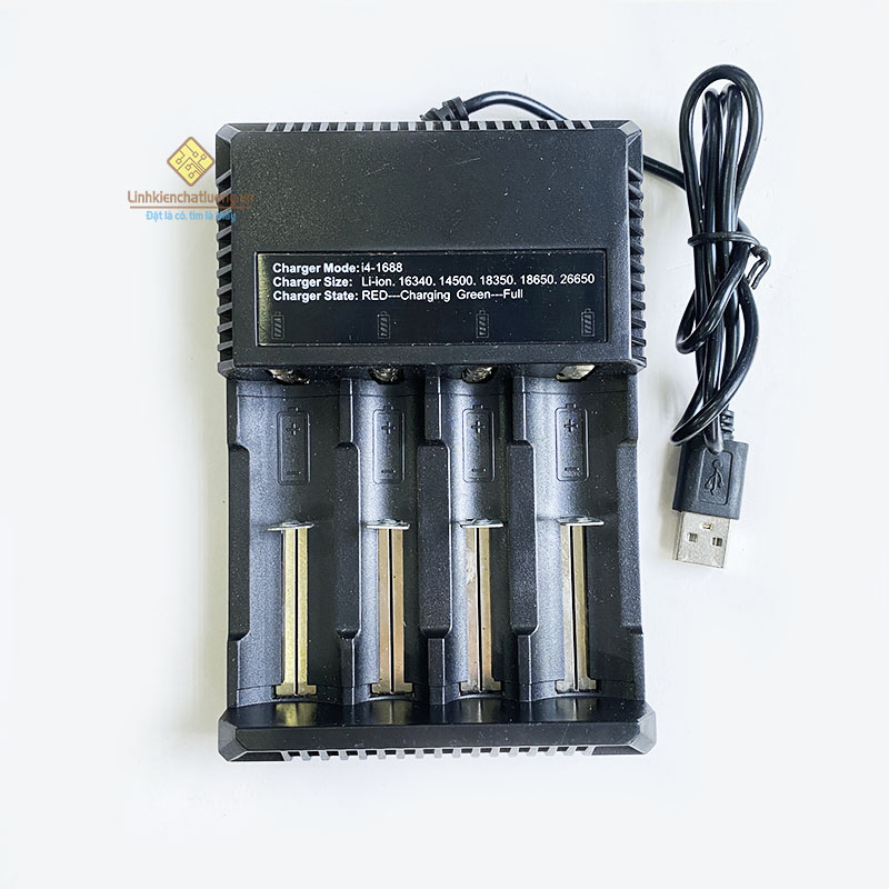 Bộ sạc 4 PIN lithium 3.7V qua cổng USB I4-1688-USB sạc PIN 18650/ 18350/ 14500/ 16340/ 26650
