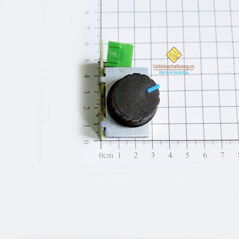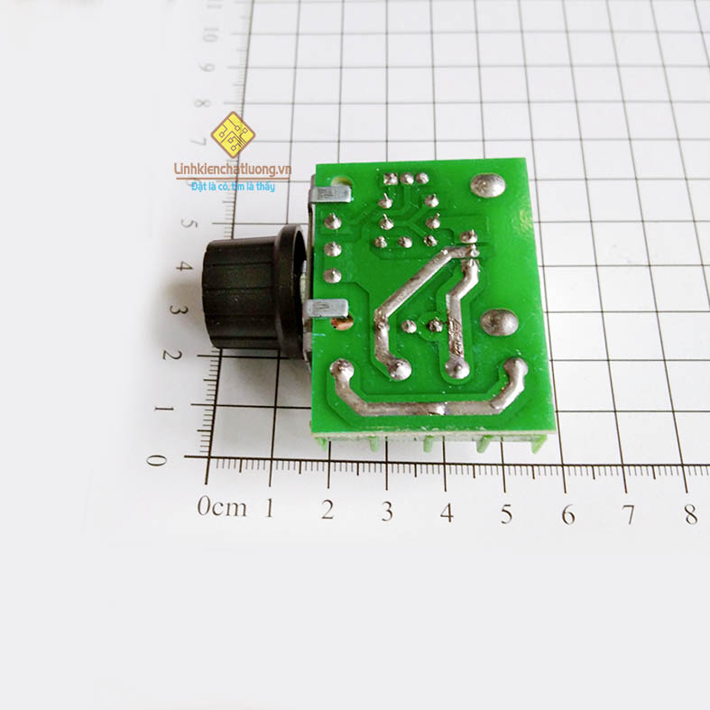 - Điện áp ra: AC 50-220V (Lưu ý: Giá trị thay đổi ở đây là điện áp trung bình. Bản chất của dimmer là điều khiển góc mở của triac, nên điện áp đỉnh đầu ra luôn bằng điện áp đỉnh đầu vào, khi đo đầu ra bằng đồng hồ vạn năng, kể cả loại có trueRMS, sẽ không thấy điện áp thay đổi khi xoay chiết áp)