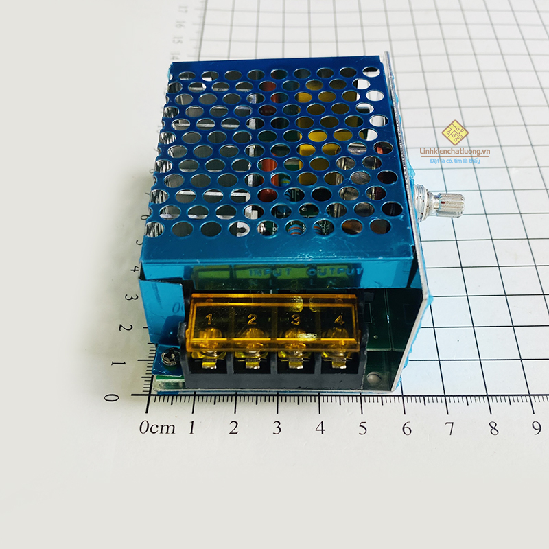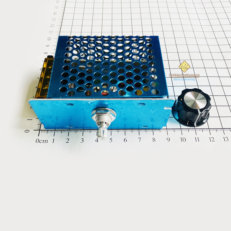 - Điện áp ra: AC 50-220V (Lưu ý: Giá trị thay đổi ở đây là điện áp trung bình. Bản chất của dimmer là điều khiển góc mở của triac, nên điện áp đỉnh đầu ra luôn bằng điện áp đỉnh đầu vào, khi đo đầu ra bằng đồng hồ vạn năng, kể cả loại có trueRMS, sẽ không thấy điện áp thay đổi khi xoay chiết áp)