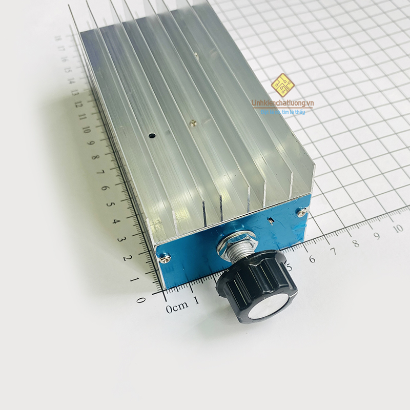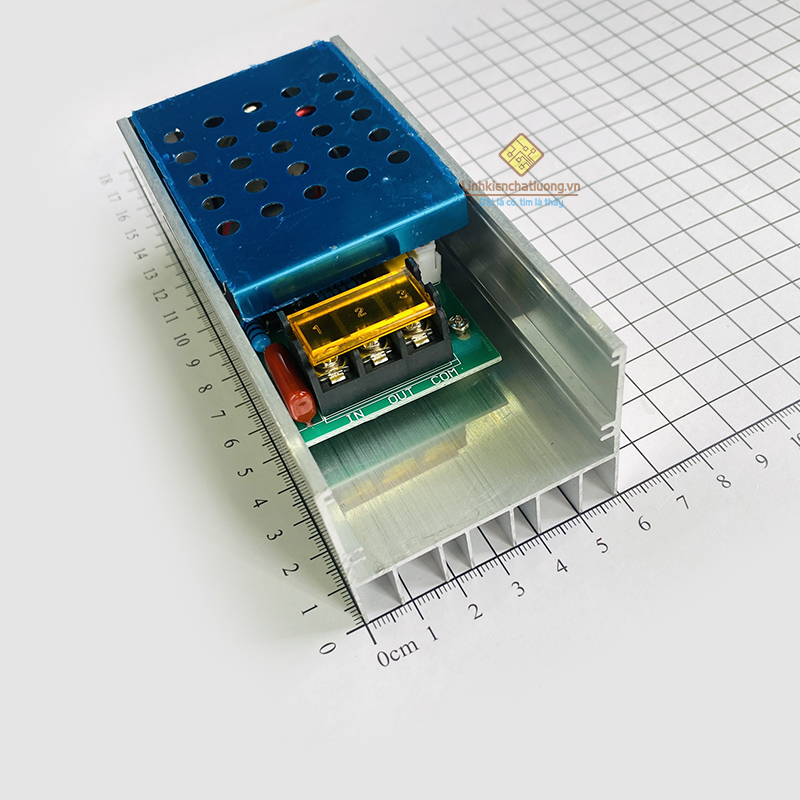 - Điện áp ra: AC 50-220V (Lưu ý: Giá trị thay đổi ở đây là điện áp trung bình. Bản chất của dimmer là điều khiển góc mở của triac, nên điện áp đỉnh đầu ra luôn bằng điện áp đỉnh đầu vào, khi đo đầu ra bằng đồng hồ vạn năng, kể cả loại có trueRMS, sẽ không thấy điện áp thay đổi khi xoay chiết áp)