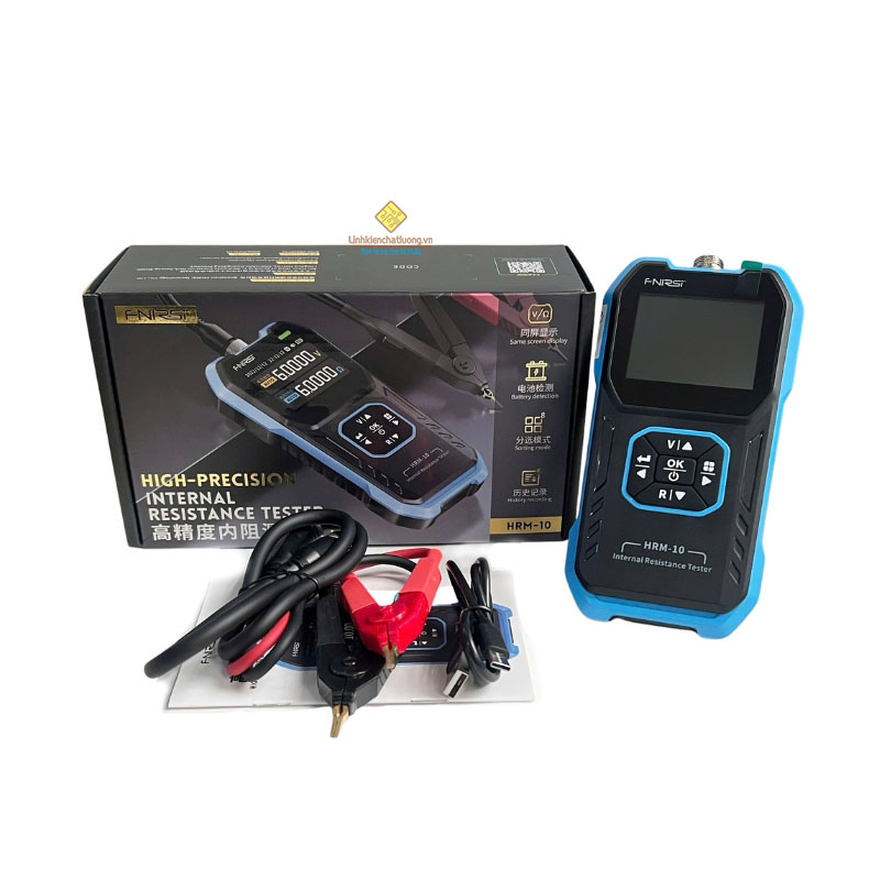 Giới thiệu về sản phẩm: FNIRSI HRM-10 là đồng hồ vạn năng đo điện trở trong bốn dây, được thiết kế nhỏ gọn dễ dàng mang theo. Thiết bị có thể tự động kiểm tra đồng thời các giá trị điện trở trong và điện áp. Sản phẩm có chế độ phân loại, tự động lọc pin tốt và pin kém chất lượng dựa trên ngưỡng do người dùng thiết lập. Thiết bị cũng hỗ trợ lưu trữ lịch sử và xuất bảng dữ liệu các phép.