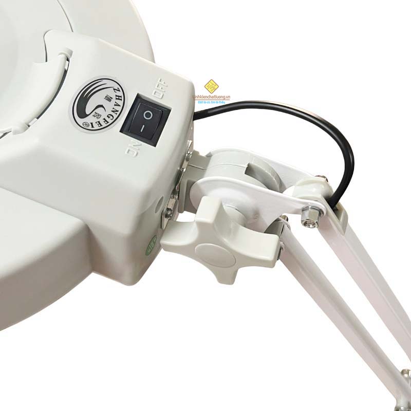 - Gọng kính gồm 3 khớp nối và đế xoay. Giúp linh hoạt trong quá trình sử dụng, có thể gập gọn, nâng hạ soi sát chân kính hoặc vươn xa ra các cạnh bàn