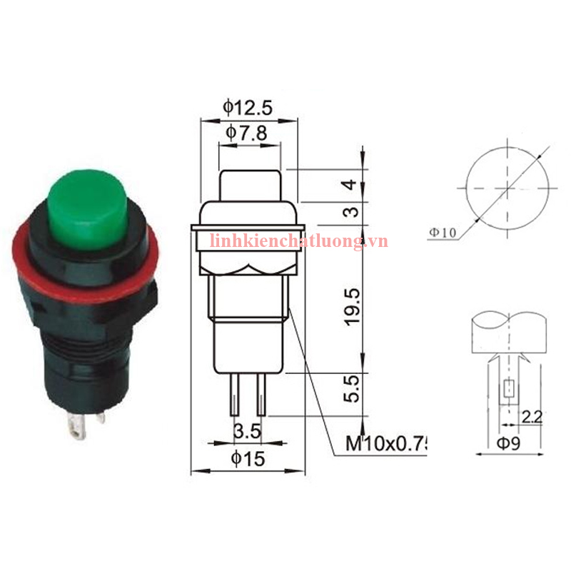 Nút nhấn giữ DS-211 2P 10mm (màu xanh)
