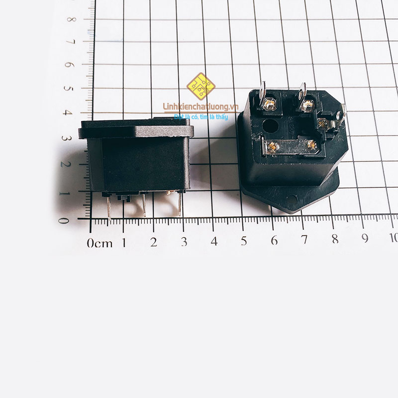 Ổ cắm nguồn AC đực AC-03 chân đồng có cầu chì bảo vệ (tai bắt vít)