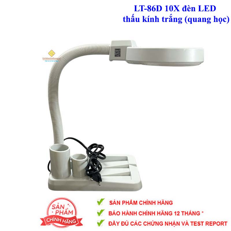 - Tên sản phẩm: Kính lúp để bàn LT-86D 10X đèn LED thấu kính trắng (quang học)