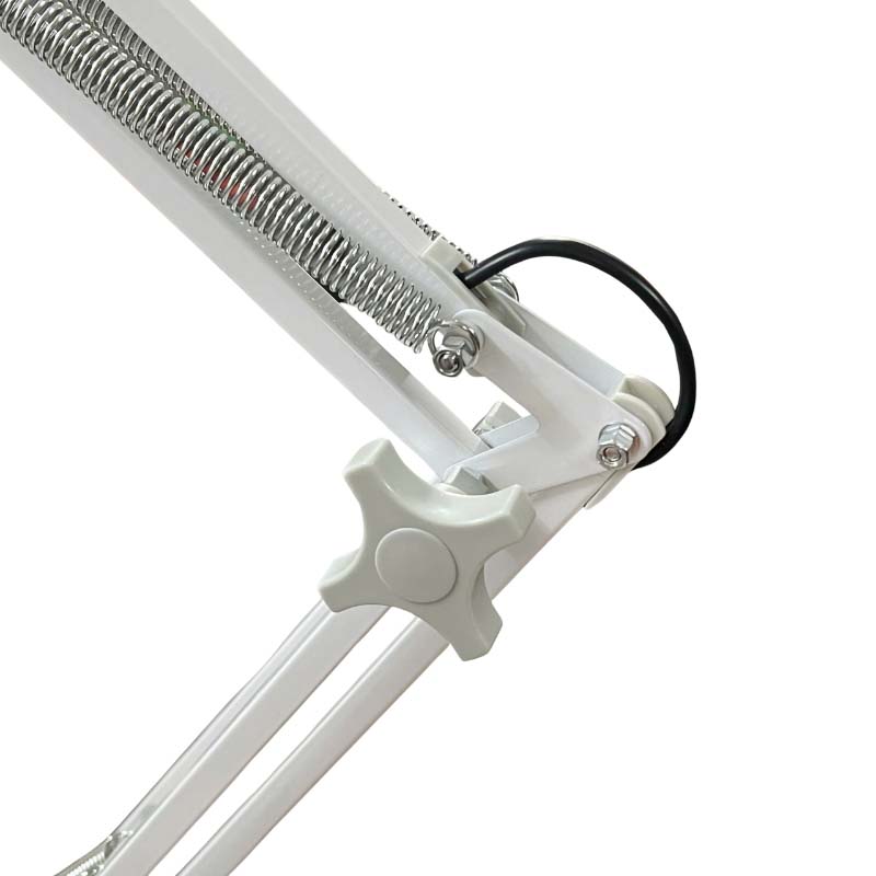 - Gọng kính gồm 3 khớp nối và đế xoay. Giúp linh hoạt trong quá trình sử dụng, có thể gập gọn, nâng hạ soi sát chân kính hoặc vươn xa ra các cạnh bàn