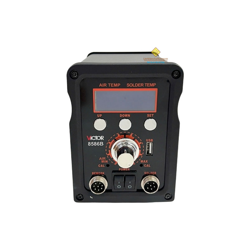Giới thiệu về sản phẩm: Trạm hàn khò VICTOR 8586B là thiết bị sửa chữa điện tử đa năng 2-trong-1, tích hợp cả chức năng hàn thiếc và khò nóng (súng hơi nóng) trong cùng một máy. Với công suất cao (tối đa 700W - 750W), thiết bị cho phép điều chỉnh nhiệt độ độc lập và hiển thị kỹ thuật số cho cả hai phần, giúp thợ kỹ thuật dễ dàng hàn, tháo lắp linh kiện truyền thống (DIP) và linh kiện dán (SMD) một cách chính xác và hiệu quả.