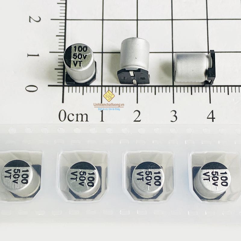 Tụ nhôm 50V 100uF 8x10mm chân dán SMD (cuộn 500c)