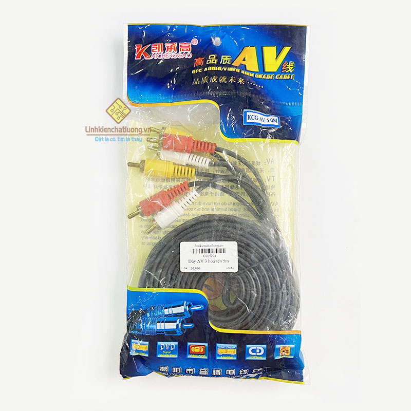 Dây AV 3 hoa sen dài 5m loại thường (3RCA-3RCA)