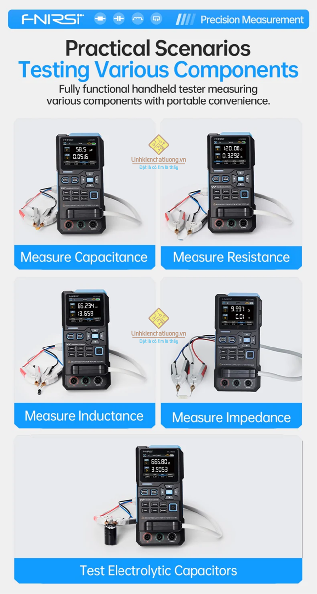 Hỗ trợ 5 tần số thử nghiệm : 100 Hz, 120 Hz, 1 kHz, 10 kHz, 100 kHz