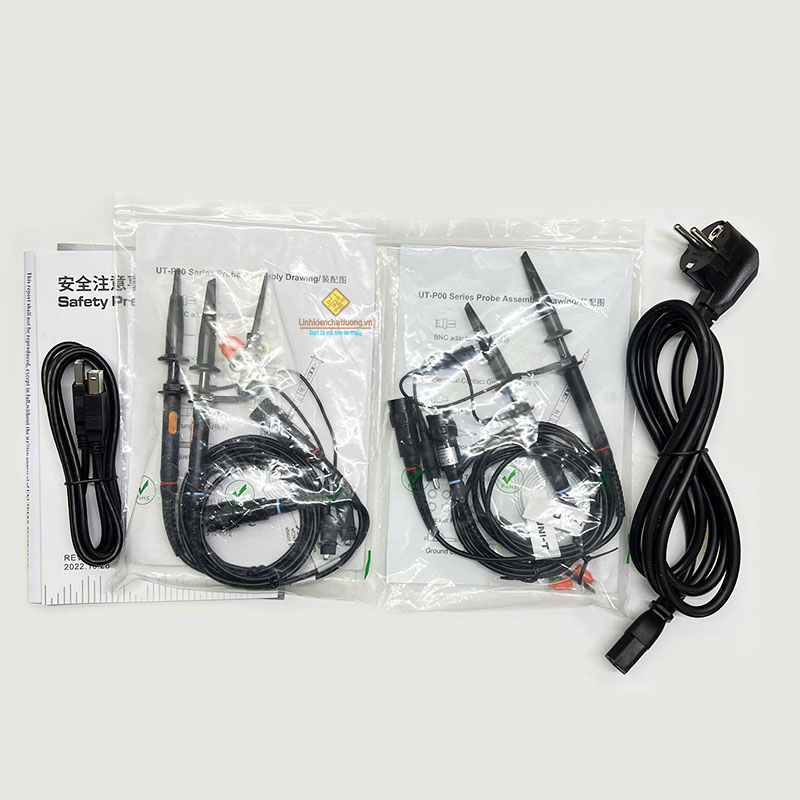 Dây nguồn, cáp USB, que đo |