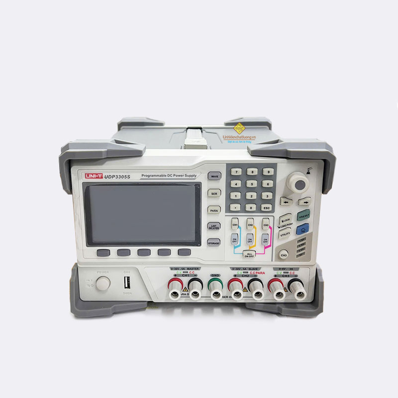 Giới thiệu về sản phẩm: Nguồn điện DC lập trình UNI-T UDP3305S là giải pháp năng lượng chuyên nghiệp với công suất mạnh mẽ 315W và 4 kênh đầu ra độc lập, cho phép tùy chỉnh linh hoạt các thông số điện áp và dòng điện với độ phân giải cực cao lên đến 1mV/1mA. Điểm nổi bật của dòng máy này là màn hình LCD màu hiển thị dạng sóng thời gian thực, giúp kỹ sư dễ dàng giám sát sự ổn định của tải, cùng khả năng kết nối nối tiếp/song song nội bộ chỉ bằng một nút bấm. Thiết bị hỗ trợ đầy đủ các giao tiếp lập trình hiện đại như USB, LAN, RS232 và Digital I/O, kết hợp với hệ thống bảo vệ đa tầng (OVP, OCP, OTP) và độ nhiễu thấp, tạo nên một công cụ đắc lực, an toàn cho các phòng thí nghiệm R&D, dây chuyền sản xuất tự động và sửa chữa điện tử cao cấp.