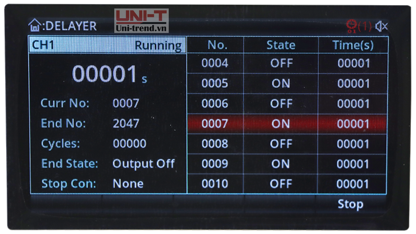 Với chức năng thiết lập danh sách và độ trễ, thiết bị có thể thiết lập tối đa 2048 bộ dữ liệu theo yêu cầu thử nghiệm, và số chu kỳ có thể lên đến 99999. Nó được sử dụng với các mẫu dạng sóng, rất thuận tiện cho việc kiểm tra chu kỳ và kiểm tra lão hóa.