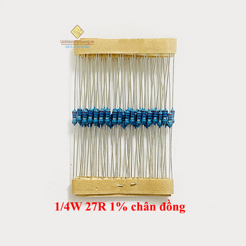 Điện trở vạch 1/4W 27R 1% chân đồng (50c)