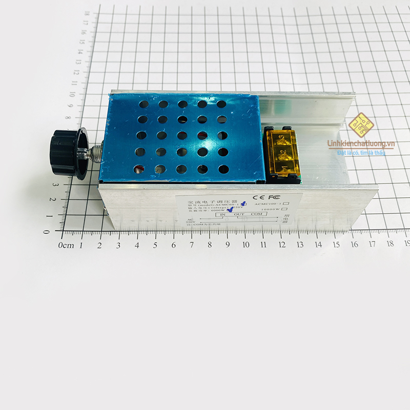 - Điện áp ra: AC 50-220V (Lưu ý: Giá trị thay đổi ở đây là điện áp trung bình. Bản chất của dimmer là điều khiển góc mở của triac, nên điện áp đỉnh đầu ra luôn bằng điện áp đỉnh đầu vào, khi đo đầu ra bằng đồng hồ vạn năng, kể cả loại có trueRMS, sẽ không thấy điện áp thay đổi khi xoay chiết áp)