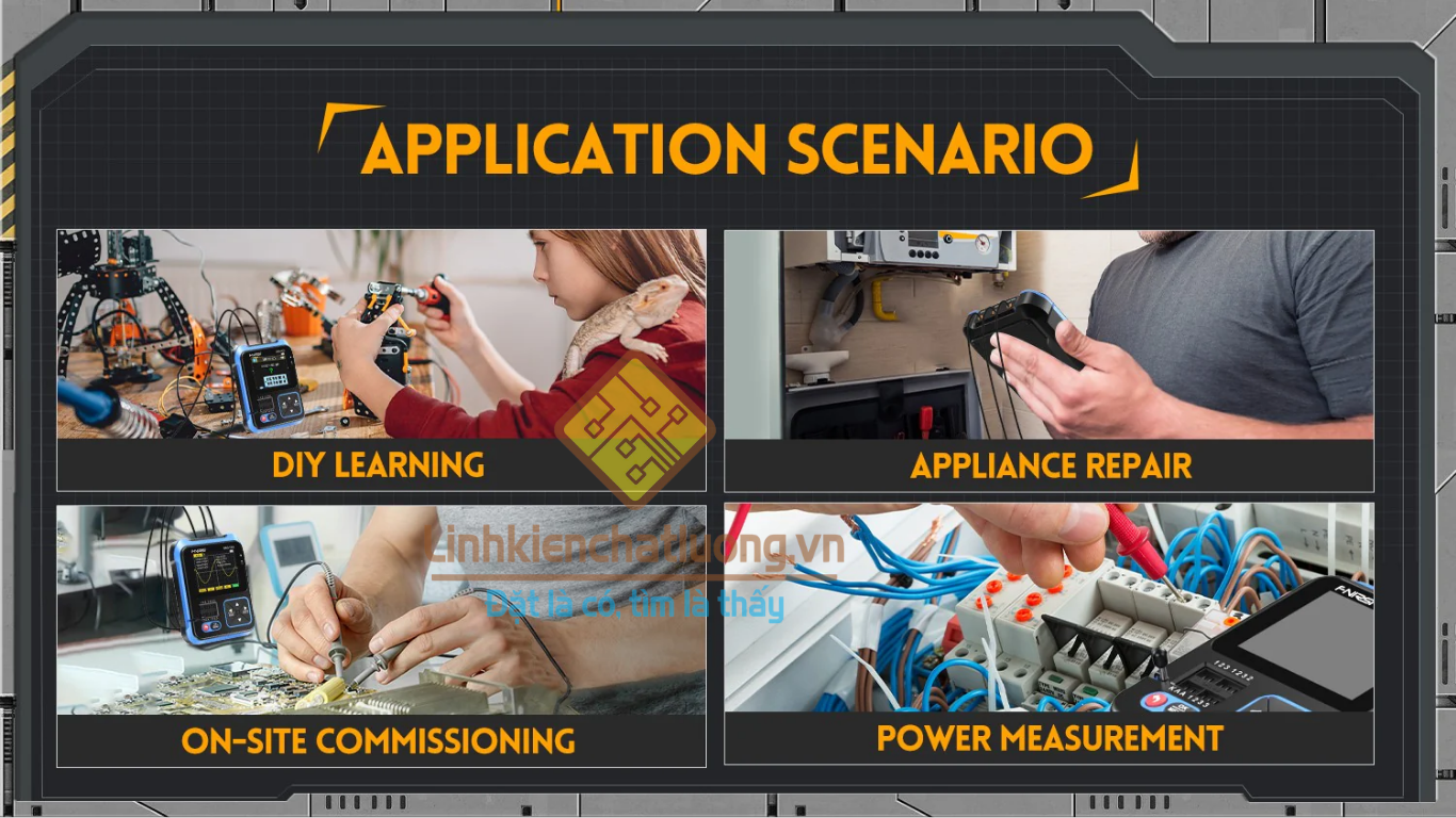 -Tích hợp 3 trong 1: Máy hiện sóng kỹ thuật số, Máy kiểm tra linh kiện, Máy tạo tín hiệu cho người mới bắt đầu và người đam mê.