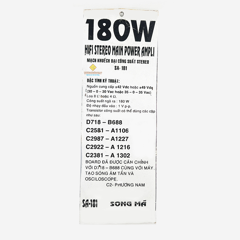 - Công suất: 180W (90W + 90W), sử dụng với loa 8R, nếu dùng loa 4R sẽ cho công suất lớn hơn