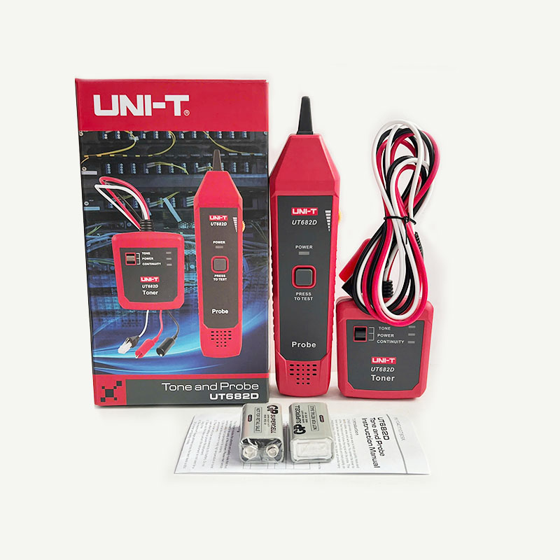 Pin 9V x 2, cáp RJ11 (UT682), cáp RJ45 (UT682), cáp RJ11 có kẹp cá sấu (UT682) |