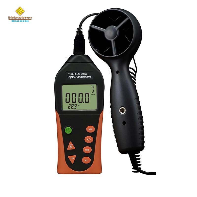 Giới thiệu về sản phẩm: VICTOR 816B là máy đo gió kỹ thuật số cầm tay (Anemometer) chuyên dùng để đo tốc độ gió và nhiệt độ môi trường. Thiết bị nổi bật với thiết kế cánh quạt (vane) tách rời, cho phép đo chính xác tốc độ gió lên đến 45 m/s (hoặc 140 km/h) với độ phân giải cao. 816B cung cấp 5 đơn vị đo tốc độ gió khác nhau, hiển thị thang độ Beaufort và có các chức năng tiện ích như đo giá trị Max/Min/Trung bıˋnh, giữ dữ liệu (Data Hold) và đèn nền LCD, rất phù hợp cho các ứng dụng HVAC hoặc theo dõi thời tiết.