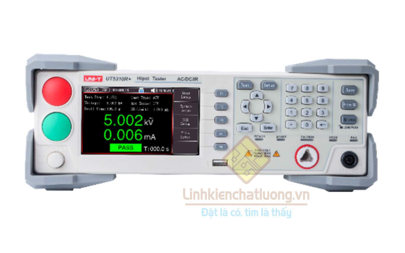 Giới thiệu về sản phẩm: UT5310D+ là một thiết bị kiểm tra an toàn điện (Hipot Tester) đa năng, được thiết kế để thực hiện cả hai chức năng kiểm tra điện áp chịu đựng AC và DC. Đây là một công cụ mạnh mẽ, được sử dụng rộng rãi trong các ngành công nghiệp sản xuất điện, điện tử và các phòng thí nghiệm kiểm tra chất lượng.