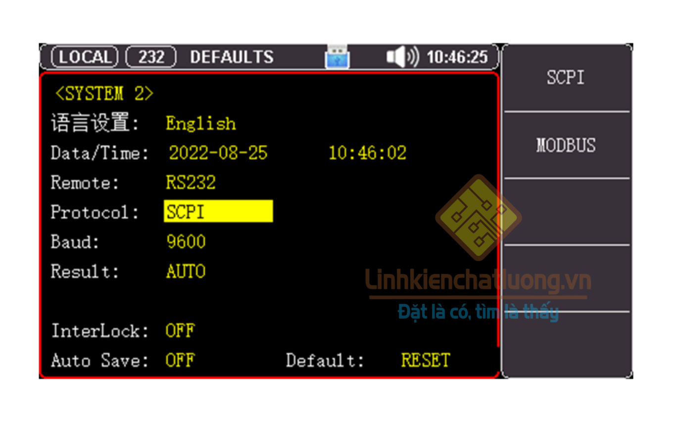 Được trang bị giao diện điều khiển công nghiệp (PLC), RS485 (tùy chọn), RS-232C và giao diện LAN để kết nối với máy tính. Đồng thời, thiết bị hỗ trợ hai giao thức truyền thông SCPI và Modbus RTU, giúp hoàn thành hiệu quả các chức năng điều khiển từ xa và thu thập dữ liệu.
