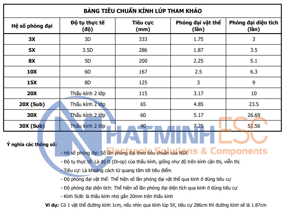3. BẢNG TIÊU CHUẨN KÍNH LÚP THAM KHẢO