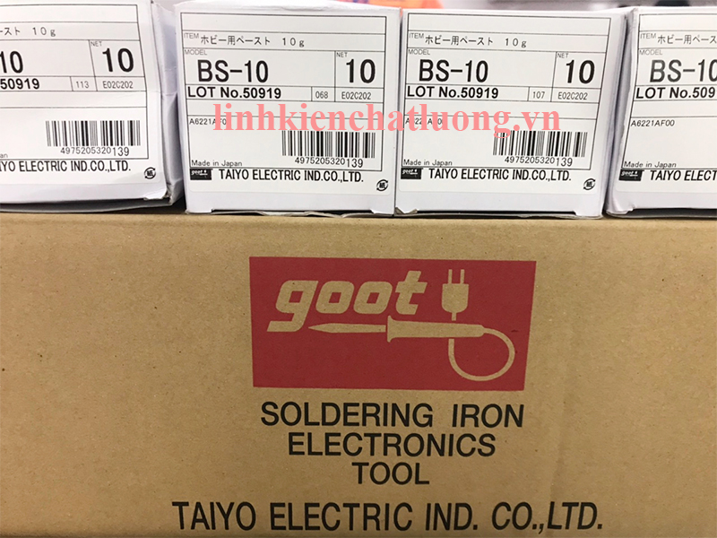 Tên đầy đủ: TAIYO ELECTRIC IND. CO., LTD Địa chỉ: 2-16-8 Yamate, Fukuyama, Hiroshima 720-0092 Japan Ngày thành lập: 1965 Website: https://en.goot.jp/