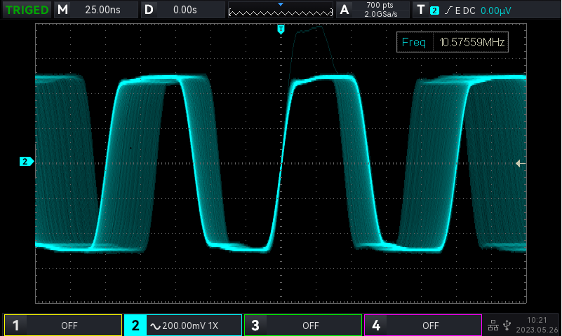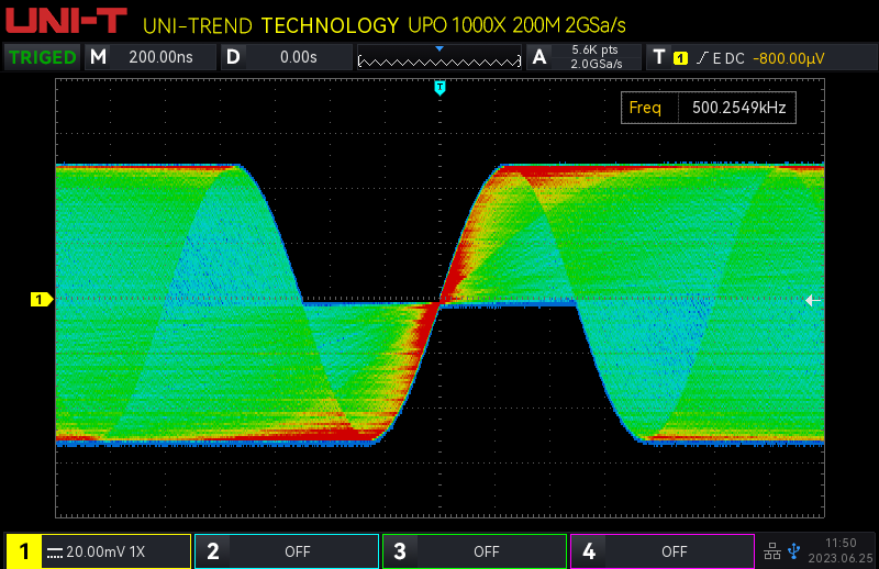 - Tốc độ lấy mẫu: 2 GSa/s (Max) - Đảm bảo dạng sóng hiển thị trung thực, không bị méo.