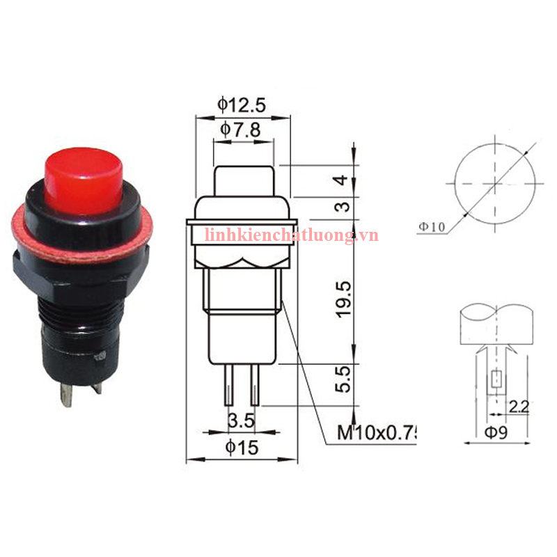 Nút nhấn giữ DS-211 2P 10mm (màu đỏ)